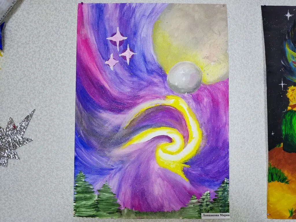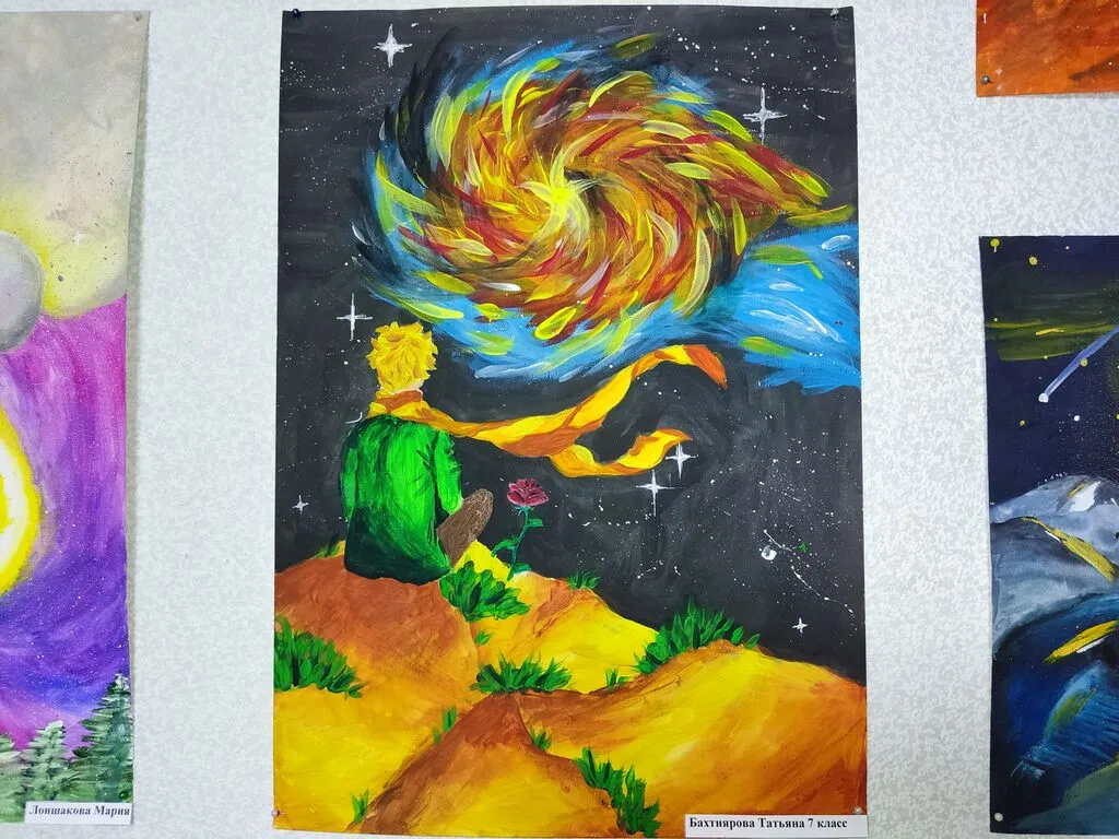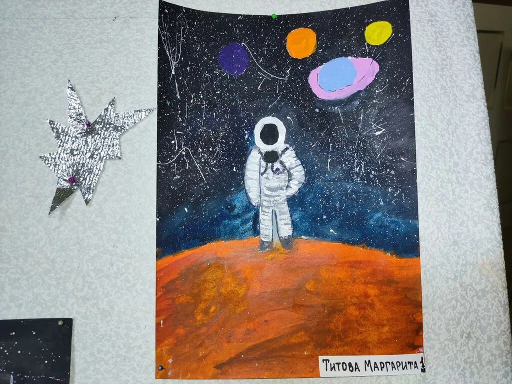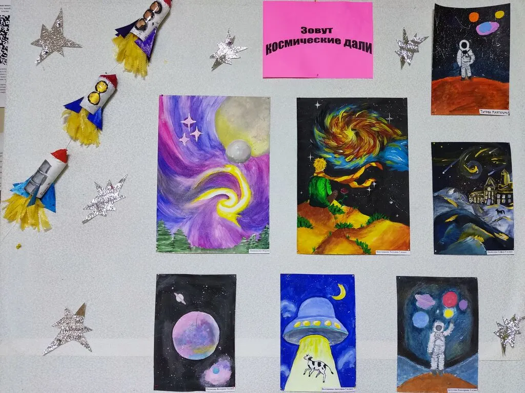 Гагаринская неделя - отмечается по-разному. В школе искусств идет выставка работ учащихся отделения изобразительного искусства, посвящённая космосу.