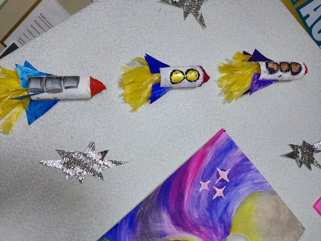 Малыши сделали объёмную инсталляцию "В Космосе", а ребята постарше - изобразили космические фантазии!